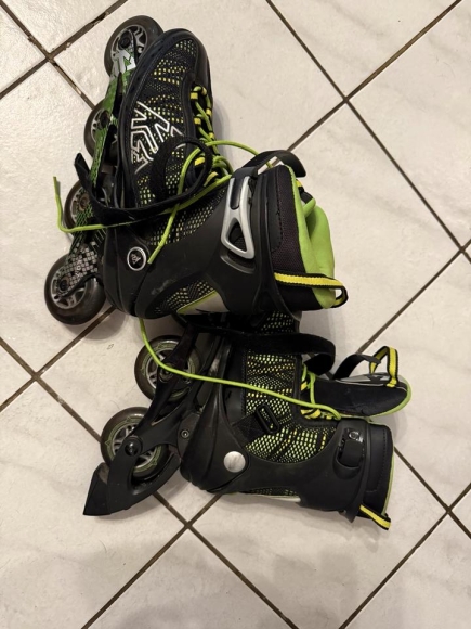 2 mal benutzte Inliner. Nach meinem Sturz nicht mehr benutzt und zum rumstehen zu schade. Leider wurde beim dem Sturz an einem Schuh der Schaft etwas beschädigt was die Funktion nicht beeinträchtigt. Siehe Bilder. Auf Wunsch gibt es die neuen Protectoren in Größe S/M dazu. Hätte noch gebrauchte von K2 in Größe L.