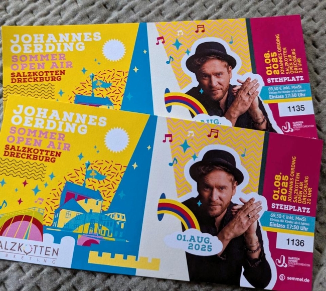 Ich verkaufe 2 Konzertkarten für das Sommer Open Air in Salzkotten Dreckburg am 01.08.2025.