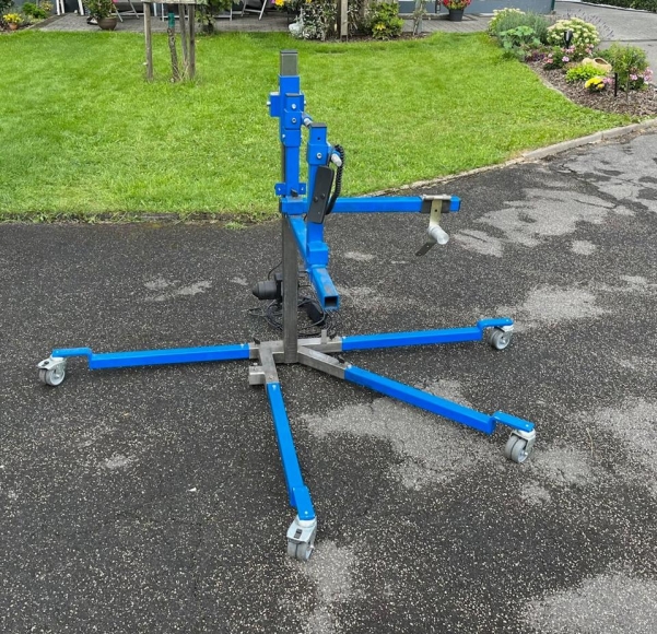 Elektrischer Montagelift für Motorradmontage oder Reparaturen, auf Rollen, somit sehr wendig.
