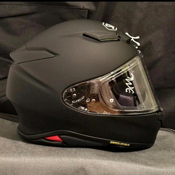 Nagelneuer Helm, gekauft bei einem offiziellen Shoei-Händler. Im Lieferumfang ist das gesamte Zubehör enthalten.