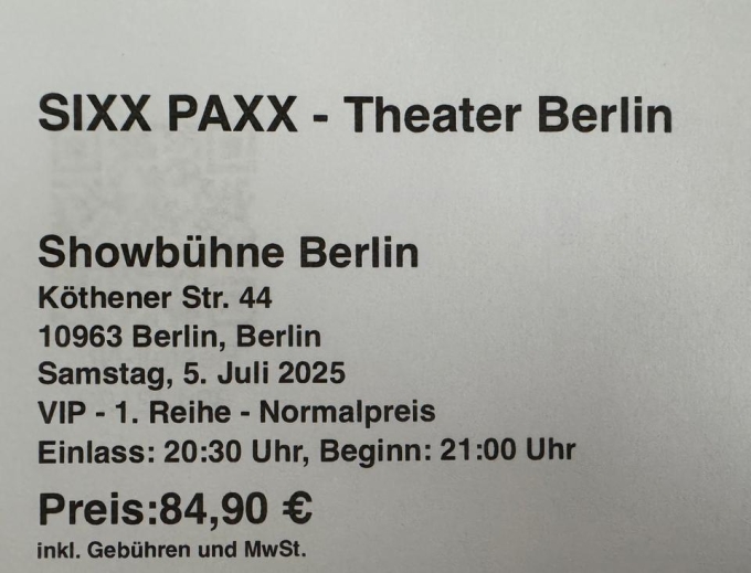 SIXXPAXX THEATER BERLIN SAMSTAG 5.07.2025 1. REIHE!
