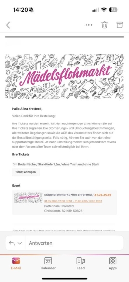 Stand Mädelsflohmarkt Ehrenfeld 31.05.25