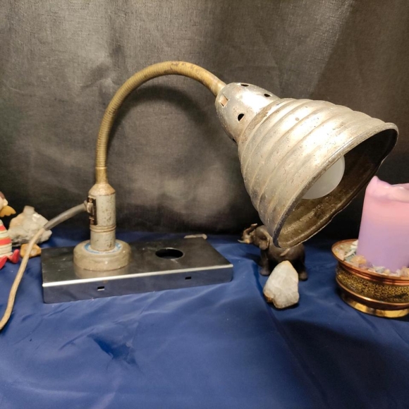 Diese Lampe stammt wohl aus den 30er / 40er Jahren und spiegelt mit ihren deutlichen Gebrauchsspuren den Charme längst vergangener Tage wieder.
