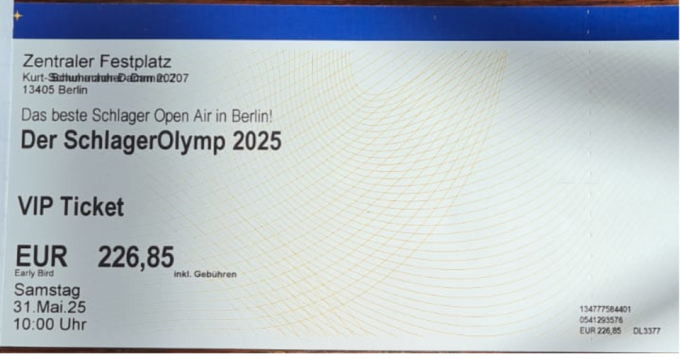 VIP Ticket SchlagerOlymp Berlin 2025 am 31.05 Eintrittskarte