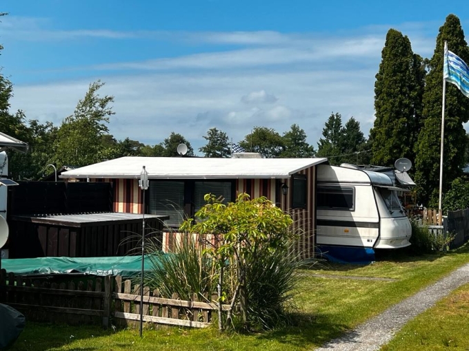 Zwei Wohnwägen auf idyllischem Dauerstellplatz in Geestland
