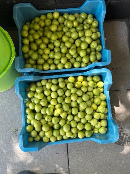 Heute frisch gepflückte Pflaumen vom Garten zum Verkauf.