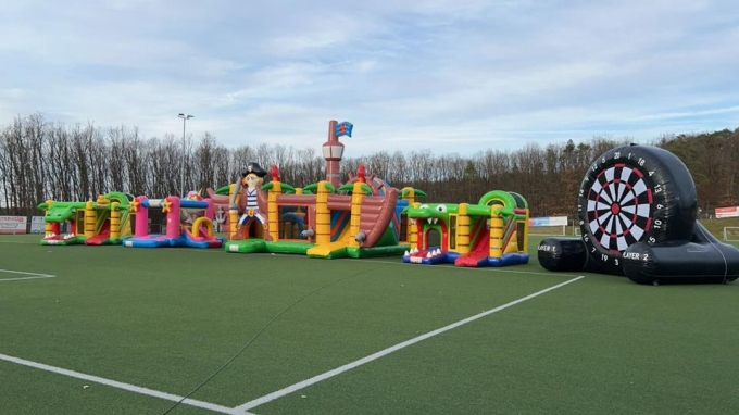 Mit ihrer Größe und der Vielseitigkeit der Spielmöglichkeiten garantiert die Hüpfburg für endloses Spielvergnügen.