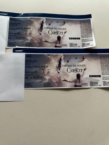 2 Karten für Cirque du Soleil Corteo leider abzugeben da unser Hund operiert wird.