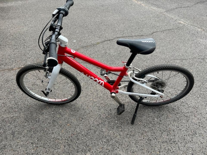 Super Fahrrad von Woom, Größe 4, mit kleinen Gebrauchsspuren am Lenkrad, siehe Fotos. Sonst top Zustand! Kommt mit Ständer. Wurde immer in der Garage gelagert.