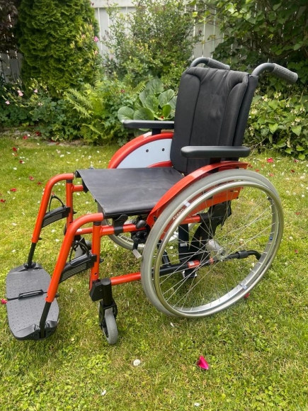 Ich biete hier einen Maira Avanti Aktiv-Rollstuhl in der auffälligen Farbe Orange Metallic an.