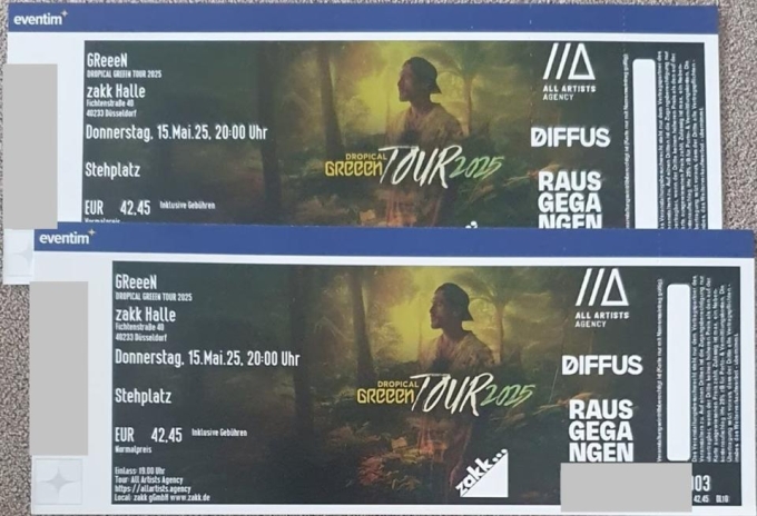 Verkauf zum Selbstkostenpreis (2x 42,45 + 2x2,50 Eventim-Gebühr + 5,90 Versand) = 95,80