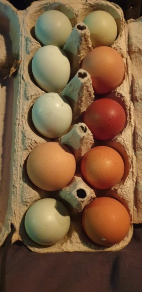 Von Zeit zu Zeit haben wir bunte Bio-Eier zu verkaufen.