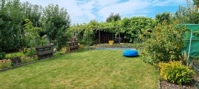 Es ist ein schöner Garten mit einem Gartenhaus, Gartenpumpe für Bewässerung und vielen Obstbäumen. Gartengeräte, Möbel, Pool und viel mehr kann nach Absprache übernommen werden.