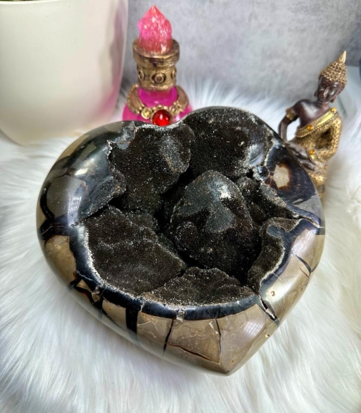 Septarie bringt Schutz, Klarheit und eine harmonische Energie in jedes Zuhause. Sie wirkt beruhigend, stärkt die innere Kraft und ist ein einzigartiges Dekorationsstück mit tiefer symbolischer Bedeutung.