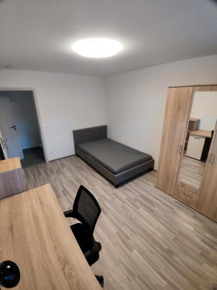 vermietet. Die anderen Zimmer sind vermietet. Die Zimmer sind alle renoviert und möbliert. Zu dem Zimmer gehört ein 120x200 Polsterbett,ein Kleiderschrank, ein Schreibtisch mit Bürostuhl, ein Regal. Die Möbel sind in sonoma Eiche gehalten und grau. Das Zimmer wird nur möbliert vermietet. In jedem Zimmer ist grauer laminat verlegt und an den Fenster gibt es Rollläden zusätzlich sind noch pliesses von ihnen montiert. Die Zimmer sind um die 15 qm gross und hell.
