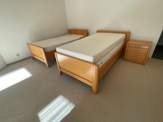 Verkaufe 2 Betten und 2 Nachttische aus Buche furniert und lackiert. Soweit noch verfügbar (ich verkaufe weitere Betten) können ein Lattenrost und eine Matratze mitgenommen werden
