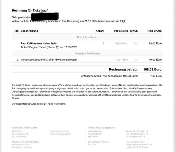 Es sind zwei Tickets für Paul Kalkbrenner am 17.5.25 in Mannheim zu verkaufen.