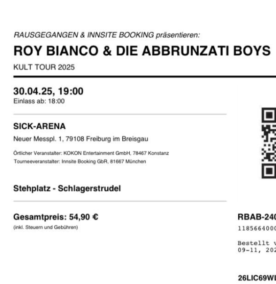 2x Roy Bianco Freiburg 30.04 Stehplätze/ Schlagerstrudel