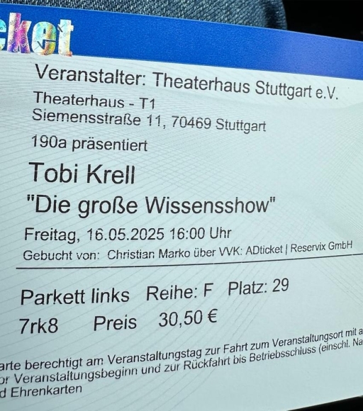 3 x Tobi Krell Stuttgart Heute 16 Uhr !Kurzfristig!