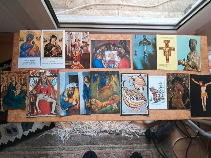 Meine Mutter war sehr aktiv in der katholischen Kirche und hat über die Jahre viele kleine religiöse Bilder gesammelt. Man kann diese im Gesangbuch beilegen. Es sind Bilder der Osterkommunion des Malers Sieger Köder und viele andere. Zu schade um einfach weggeworfen zu werden. Versandkosten 2.-€