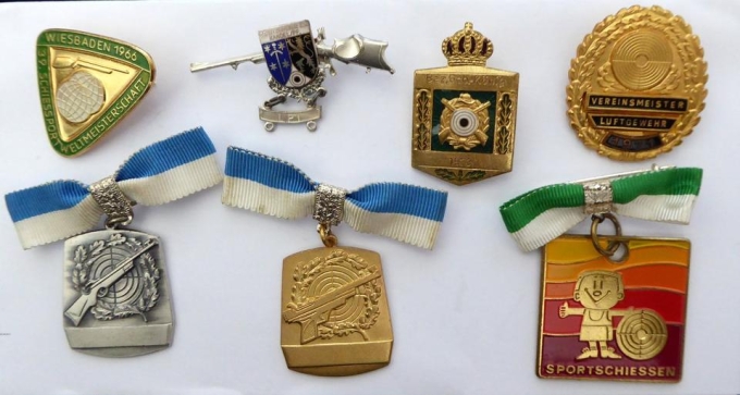 Zum Verkauf steht hier ein Konvolut Schießsport Abzeichen. 39. Schießsport Weltmeisterschaft Wiesbaden 1966, Vereinsmeister Luftgewehr 1971, Schützenverein Kandel, Bezirks Schützenkönig 1973, usw. Die Angebotsbilder geben den guten Zustand recht ordentlich wieder.