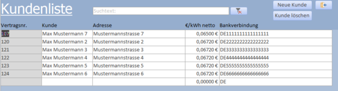 Im Programm werden sämtliche Kunden angelegt und zu jedem Kunden werden die Rechnungen erzeugt (siehe Bilder).