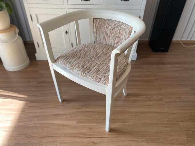 Der Stuhl wurde liebevoll aufgearbeitet, lackiert und neu bezogen, Shabby chic, Boho Stil. Einfach gemütlich und hell, freundlich.