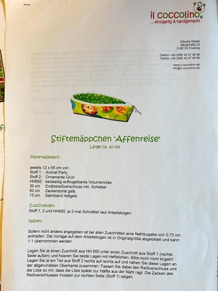 Biete hiermit ein Set von „il Coccolino“ zum Verkauf an. In dem Set sind Materialien enthalten, womit man ein Auto-Utensilio und ein Stiftemäppchen selber erstellen kann.