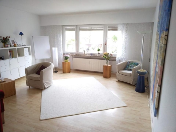 Wir bieten die Mitnutzungsmöglichkeit unseres hellen, ruhigen Praxisraums im 1.OG mit ca. 20qm in der Bismarckstraße in Karlsruhe (nahe Europaplatz). Das Haus verfügt zudem über einen Fahrstuhl.