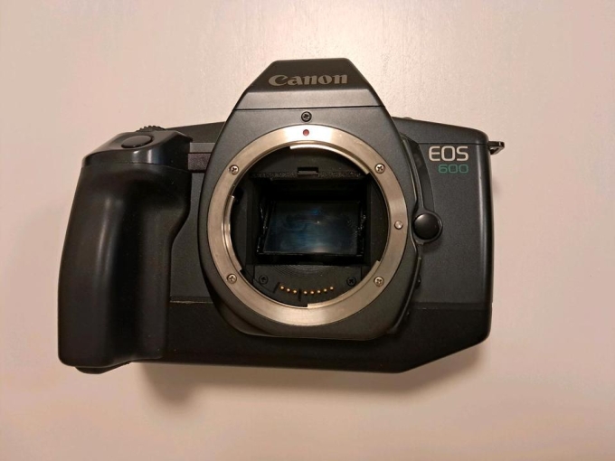 Canon EOS 600 Kamera mit Gebrausspuren.