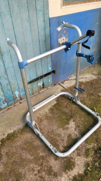Fahrradträger für Wohnwagen oder Wohnmobil mit Anbauteilen abzugeben. Dieser war an einem Wohnwagen Rapido Club montiert.