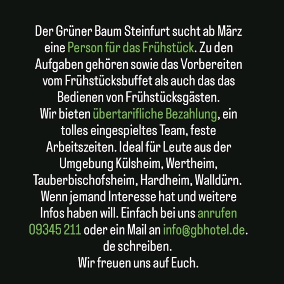 Der Grüner Baum Steinfurt sucht ab März