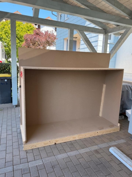 Zum Verkauf stehen große und robuste Holzverpackungsteile, die für den sicheren Transport eines Gerätes verwendet wurden. Die massiven und stabilen Holzplatten bieten viele Möglichkeiten zur Weiterverwendung, beispielsweise als Lagerbox, Unterstand oder für kreative DIY-Projekte.