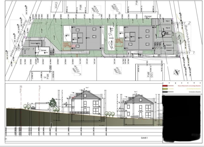 Geplant sind 2 vollunterkellerte Häuser - ein Einfamilienhaus mit Einliegerwohnung und ein Mehrfamilienhaus mit 3 Wohneinheiten, somit gesamt 5 Wohneinheiten.