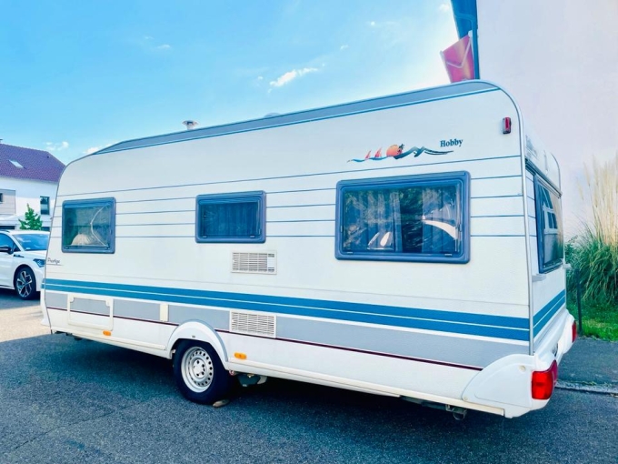 Zum Verkauf steht ein zuverlässiger und gepflegter Wohnwagen **Hobby Prestige 495** Bj 1998– ein echtes Raumwunder mit umfangreicher Ausstattung und ideal für spontane Urlaubsfahrten!
