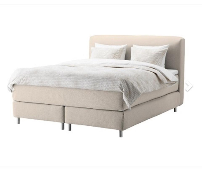 Ich biete das IKEA MJÖLVIK Boxspringbett ohne Matratze, aber mit Stoffüberzug für die Matratze.