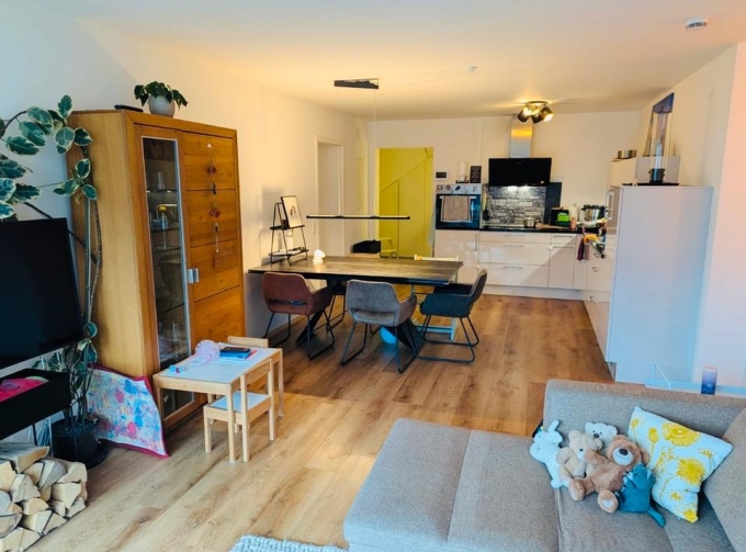 Aufgeteilt in offenen Wohn-Ess und Kochbereich mit Sitzmöglichkeiten und direktem Zugang zur sonnigen Terrasse.