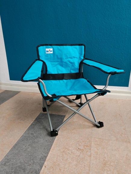 Angeboten wird ein Campingstuhl mit Sicherungsgurt. Dieser robuste Klappstuhl ist speziell für Kinder konzipiert und bietet dank des stabilen Stahlrahmens und des strapazierfähigen Polyester-Sitzbezugs maximalen Komfort und Sicherheit.