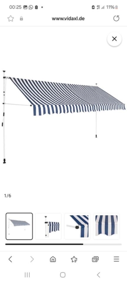 klemmmarkise blau weiß 250cm mi LED Beleuchtung