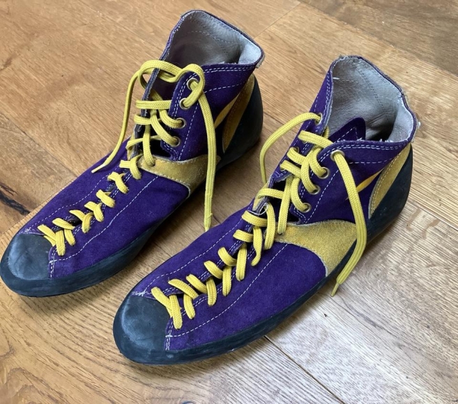 Kletterschuhe Größe 44. Ein bisschen altmodisch, aber gut erhalten, da wenig gebraucht