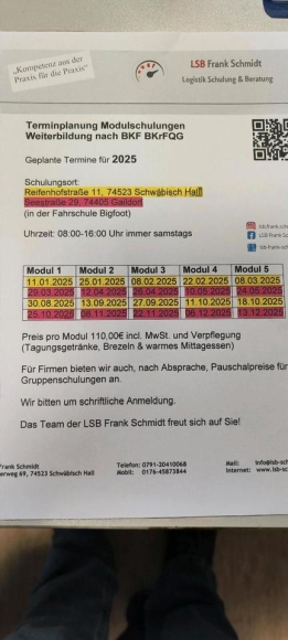 Wir bieten in Schwäbisch Hall und Gaildorf Modulschulungen für LKW & Bus an. Gerne können wir auch Inhous Schulung für Firmen anbieten.
