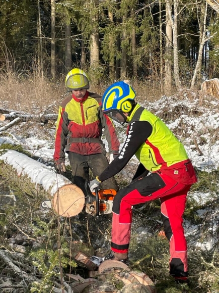 Beim Motorsägen-Grundlehrgang lernst du die Grundlagen der Motorsägenarbeit in Theorie und Praxis. Themen wie Arbeitssicherheit, Fällung von Schwachholz und die Arbeit am liegenden Holz stehen im Vordergrund.