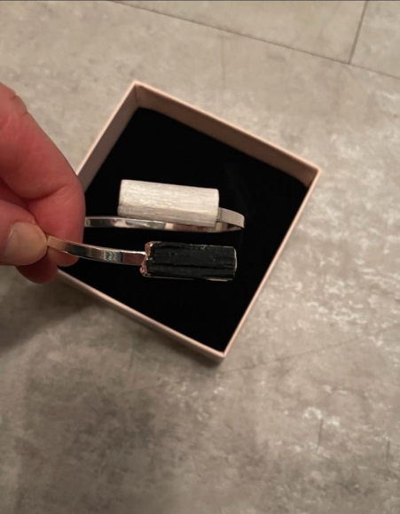 Größenverstellbare Armreife mit schwarzem Turmalin und Selenit vereint, sorgen für einen starken Schutz vor negativen Energien und lassen gleichzeitig deine Energien frei und klar fließen.