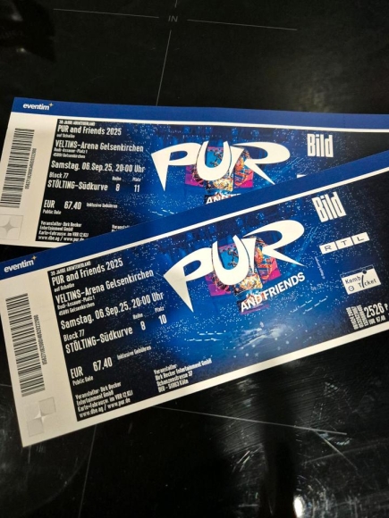 Verkaufe 2 Eintrittskarten für PUR and Friends am 06.09.2025 in Gelsenkirchen. Preis pro Karte