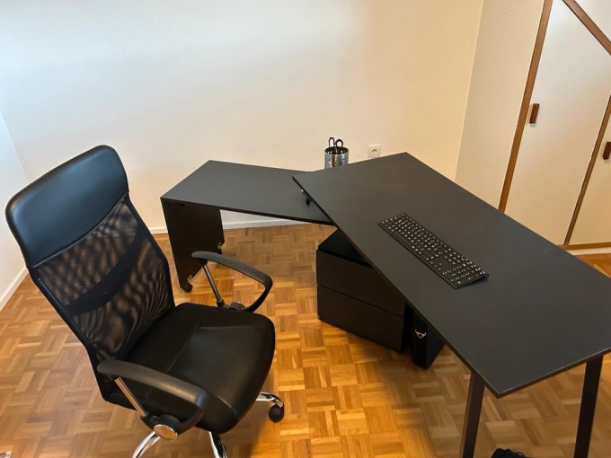 Verkaufe hier einen Schreibtisch wegen neu Anschaffung . Kann wahlweise als Eckschreibtisch links oder rechts gestellt werden. Mit festem Schubladenschrank.