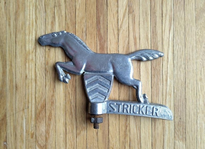 Verkaufe eine Schutzblechfigur aus Aluminium der Fahrradmarke STRICKER für ein OLDTIMER-Fahrrad, sehr schöner Zustand, siehe Bilder.