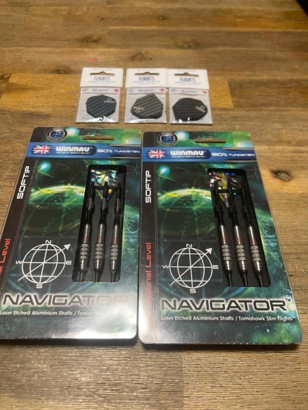 Verkaufe meine Dartpfeile von Winmau Navigator 20g der Barrel ist aus 90% Tungsten und 38 mm lang das rechte Set wurde geöffnet und nur kurz angespielt das linke Set ist ungeöffnet ich verkaufe es für 48€ VB es wird nur als Gesamt packet verkauft Bezahlung NUR per PayPal der Versand ist Inklusive da Privat Verkauf keine Garantie und keine Rücknahme ich lege dazu noch 11 pro grip Shafte in Schwarz 48mm