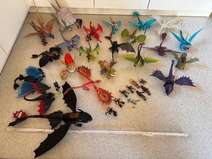 Wir lösen unsere Dragons-Sammlung auf - nahezu alle abgebildeten Drachen müssten von Spin Master DreamWorks sein und Bezug zu den einzelnen Filmen haben.