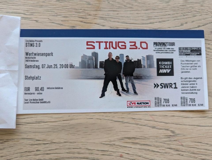 Biete eine Karte für Sting 3.0 in Heilbronn am 07.06.25.
