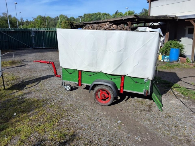 Anhänger wurde nur zum fahren auf Traktor Treffen benutzt, es passt genau ein Feldbett rein und was man sonst noch auf den Treffen braucht.